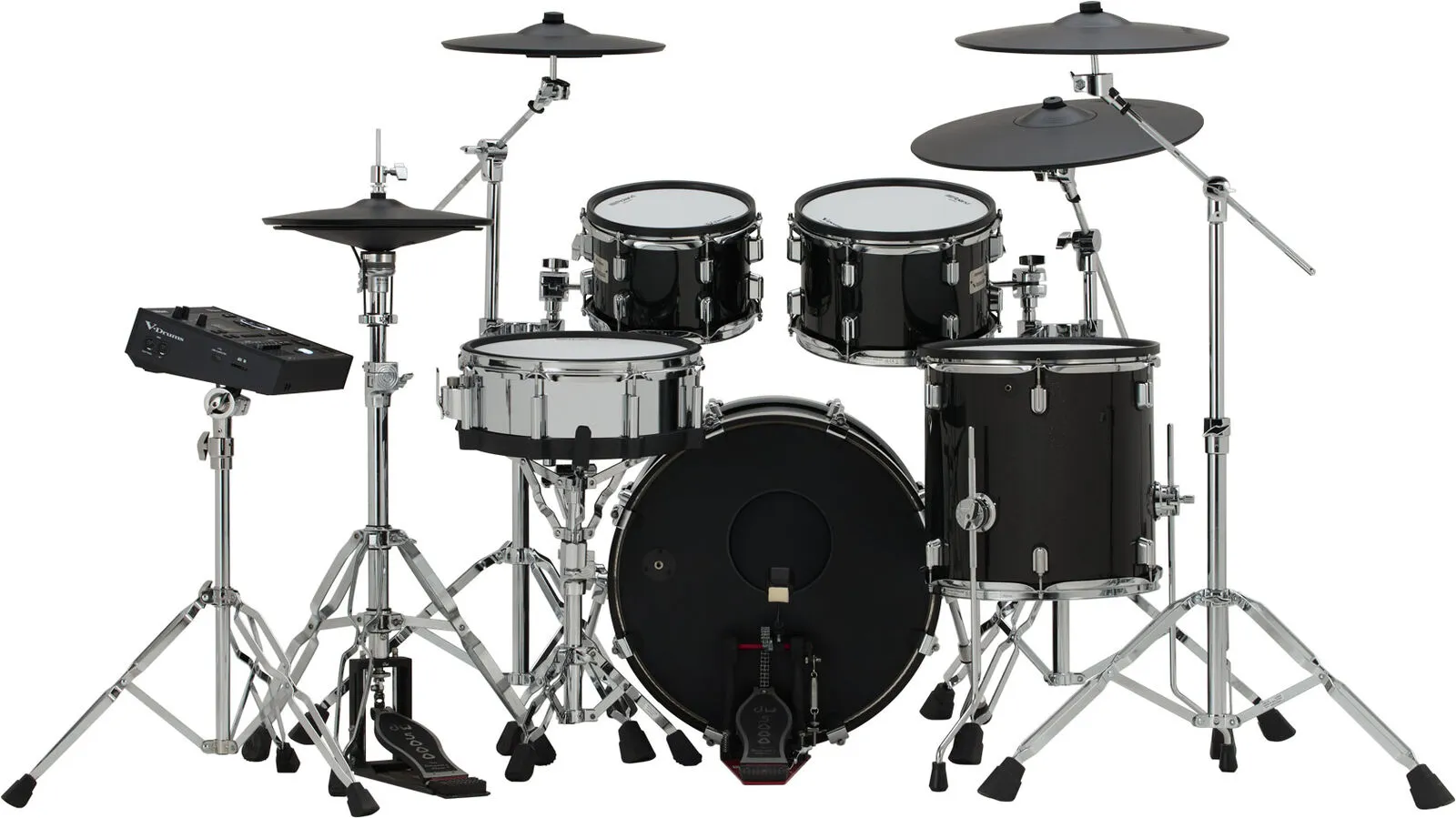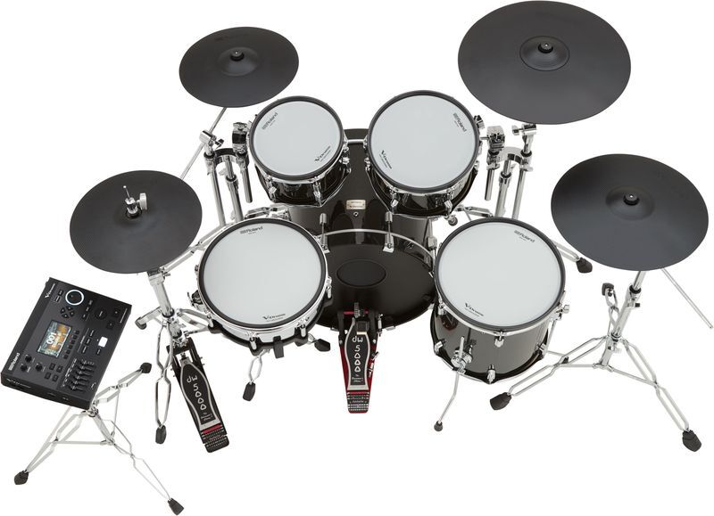 • Flagship five-piece V-Drums 5 Series kit with full-depth wood shells and advanced digital snare, ride, and hi-hat pads