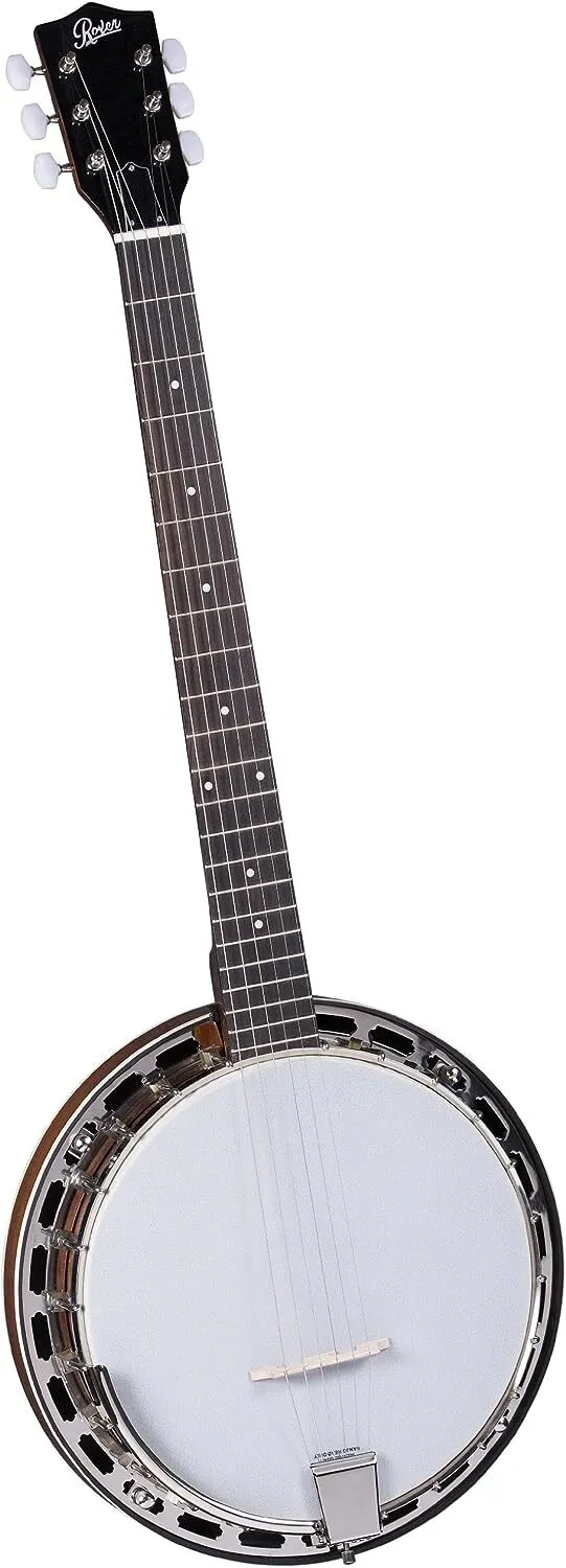 RB-115G Rover Front Porch Series Resonator Banjo : This new Rover RB-115G combines all the best features of two popular instruments for the player who wants something new and different! Any guitarist can instantly get that distinctive banjo sound without having to learn any new technique. The comfortable, well-contoured 6-string neck plays just like a regular guitar but the player has easier access to the highest positions as the player's left hand can easily reach up to the 22nd fret! The tone is big and full with a standard 11" diameter pot with attached resonator. This guitar-banjo will definitely allow your music to be heard! The sealed chrome-plated tuning machines tune smoothly and accurately and the Mahogany neck has an adjustable truss rod to ensure perfect alignment at all times. The new RB-115G is a novel instrument with unlimited possibilities!
