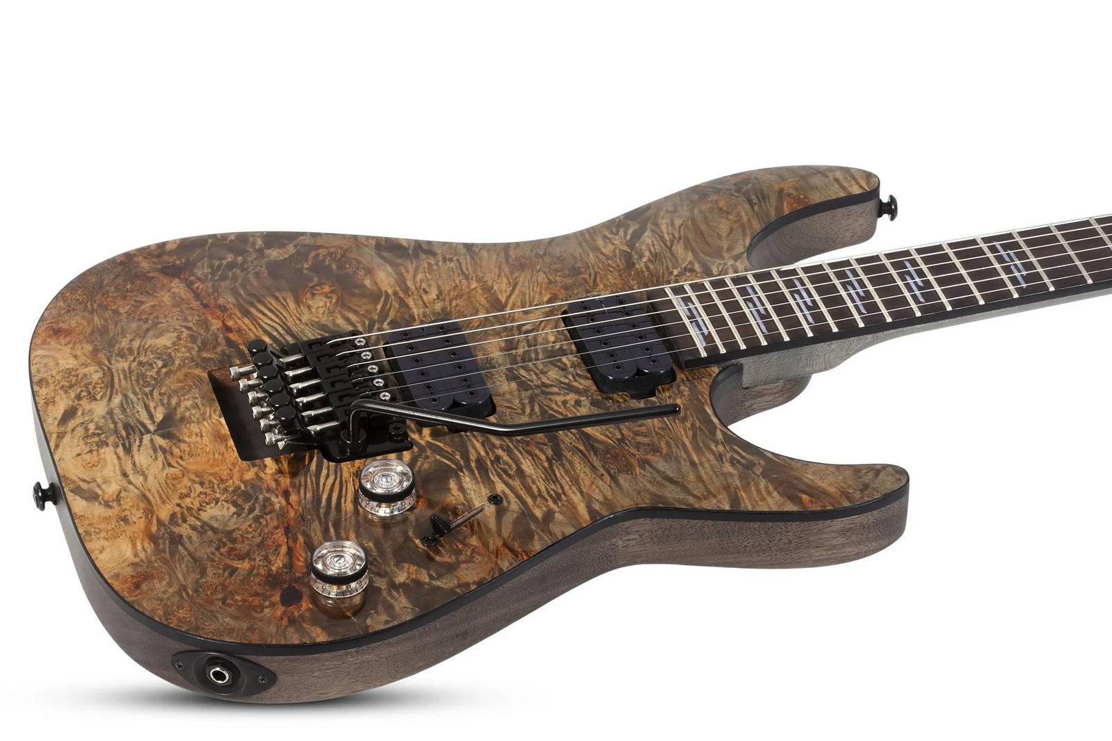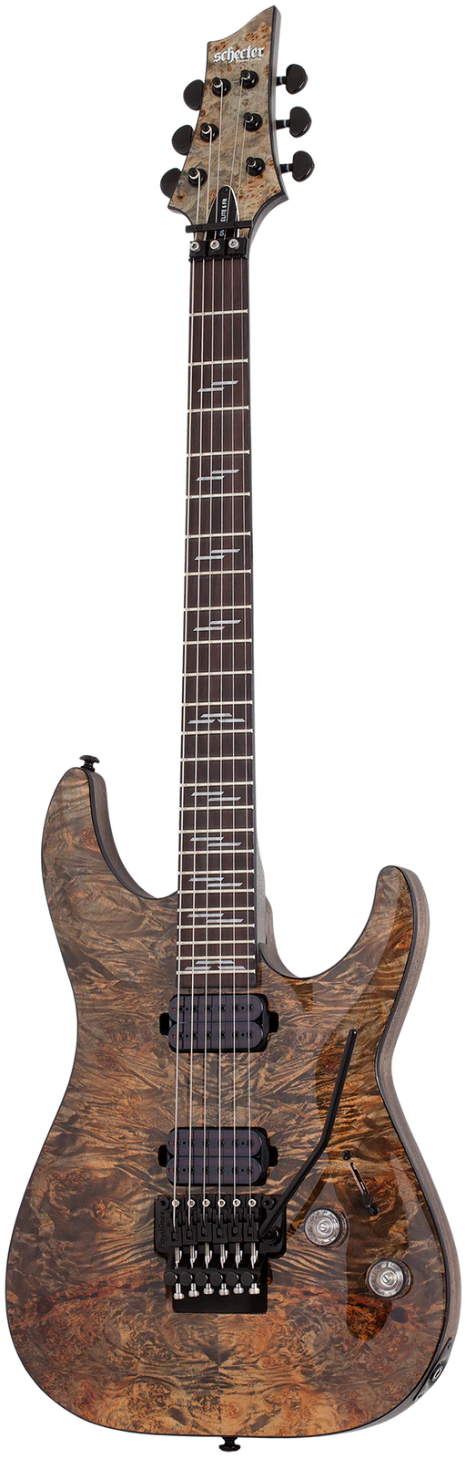 With its stunning burl top and Heretic pickups, the Schecter Omen Elite-6 FR is one guitar you won't want to stop playing. The Omen series has been a longstanding favorite to players of all levels, and the Omen Elite FR marks a notable upgrade in all the right directions. With its mahogany-maple construction and streamlined electronics, you can't go wrong. Factor in the visual upgrades, thin "C" neck, Heretic pickups, and a double-locking Floyd Rose tremolo, this Elite is one Omen that's too good to pass up.