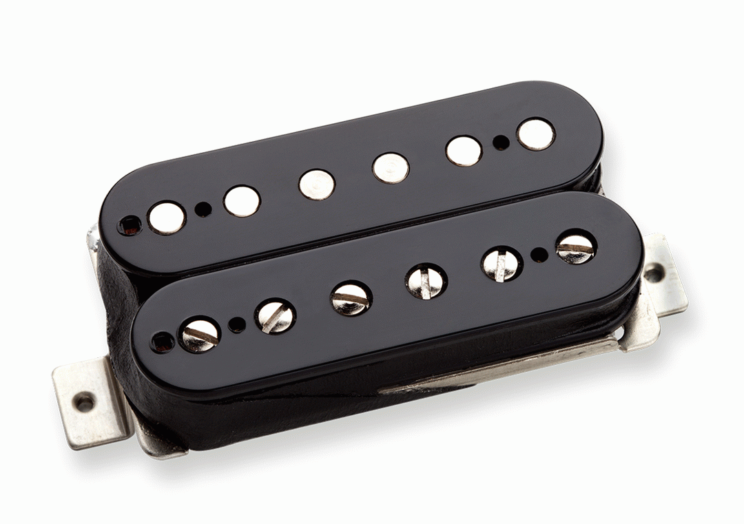 The ’59 bridge model is a vintage output humbucker that’s great for rock, blues, and more. Its vintage-inspired coils give it an airy quality that is firmly in the P.A.F. family, and the alnico 5 bar magnet and vacuum wax potting make it compatible with lighter guitar strings and louder amplifiers than were ever used in the 1950s. The result is a pickup with tons of old-school tonal character, but with a brighter top end, and a slightly more compressed sound. The ’59 neck model is one of our most popular pickups because it’s so versatile. Like its bridge-position sibling, the ’59 neck is designed in the spirit of the original P.A.F. humbuckers of the 1950s, with sweet sustain, and a warm, full sound that still possesses a clear attack. We’ve made a few refinements to slightly modernize the design and make it more adaptable to different styles. The high end is slightly boosted for improved pick-attack clarity and the mids are a little scooped for an open, smooth sound that’s great for preserving the clarity of the individual notes in a chord. The ’59 neck was born to accompany the ’59 bridge, but countless players pair it with a high output bridge humbucker, such as a JB or Custom. It’s also a popular choice for humbucker-routed Telecasters. Offered in 6-string standard humbucker and Trembucker spacings, the ’59 model features a variety of traditional vintage treatments, such as 42AWG plain enamel mag wire, long-legged nickel-silver bottom plate, vintage single-conductor braided push back lead wire, and no logo. If you opt for a four-conductor version for coil splitting, the ’59’s single coil mode is crystal clear. As with all of our P.A.F.-style pickups, the ’59 vintage output humbucker is wound on Seymour’s classic Leesona 102 pickup winding machine from the old Gibson factory in Kalamazoo, MI. Also available for neck and bridge in a passive mount 7-string configuration.