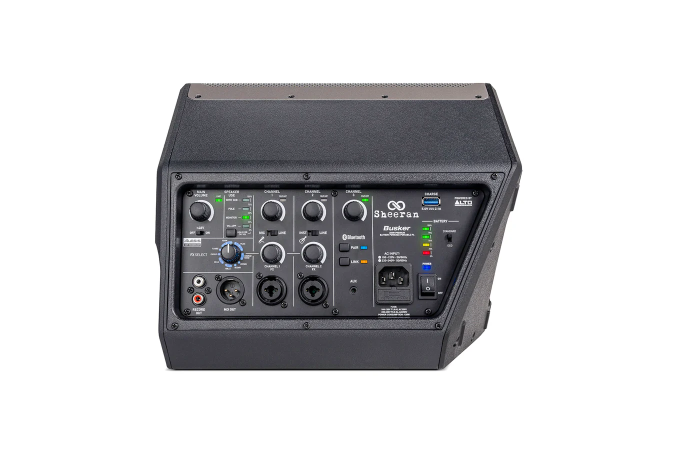 The Sheeran Special Edition Busker offers crystal-clear audio and easy mobility for on-the-go artists of various genres, skill levels, and professional backgrounds. Built for artists wishing to captivate audiences in public settings, this all-in-one powerhouse of a PA speaker will not only broadcast your performance with precision and power, but it also eliminates the need for a cumbersome armoury of equipment, allowing you the utmost mobility and freedom while performing. With 200W of raw acoustic power, the Sheeran Special Edition Busker delivers the best quality audio reproduction in the portable speaker space. DSP processing and a built-in three-channel mixer enable users to fine-tune their live sound with professional precision. In addition, the Busker has unique modes that adjust the sound output according on how the device is oriented for your performance - monitor style in vertical and horizontal orientations, or simply pole mounted on a tripod or subwoofer.