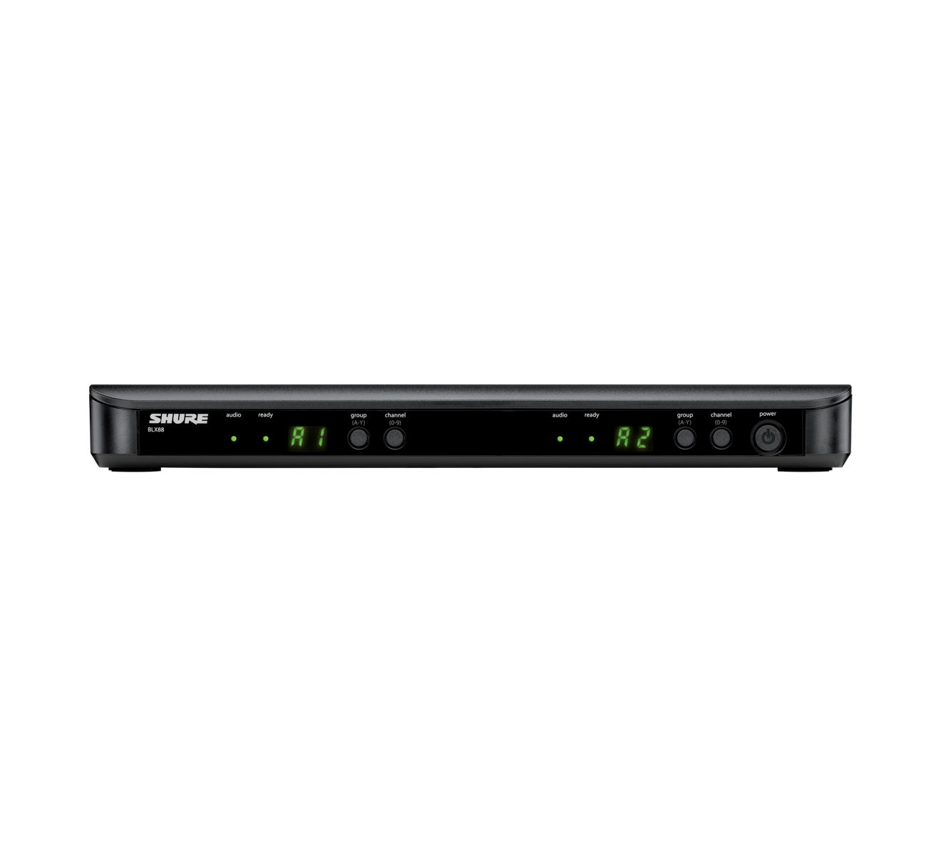 The Shure BLX288/B58 Wireless Dual Vocal System combines professional-quality sound with simple setup and and up to 14 hours battery life for legendary audio performance for two vocalists right out of the box. The system includes BLX88 tabletop dual-channel receiver, 2 legendary BETA58A handheld transmitters, 2 microphone clips, power supply, 2 AA batteries, and user guide.