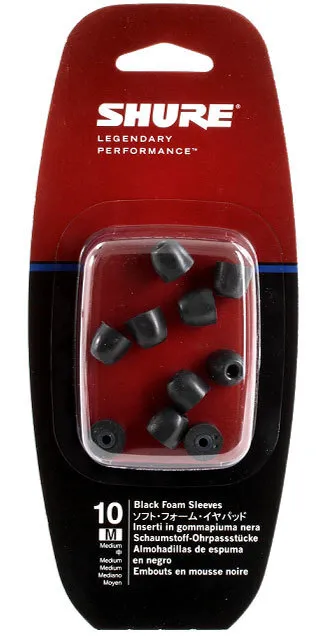 Shure Medium Size Black Foam Earphone Sleeves (PK-10)