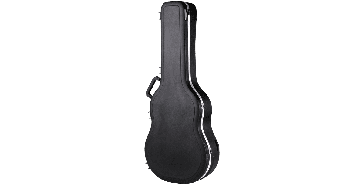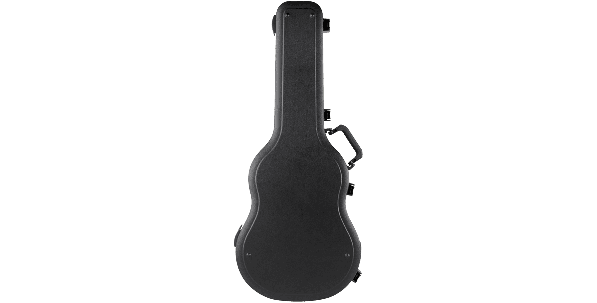 Designed to accommodate the fiberglass reinforced nylon trigger release latches with a TSA recognized and accepted locking latch and a comfortable, cushioned rubber over-molded handle. Fits dreadnought and 12 string guitars with a contoured arched lid that will fit knobs on electric models. Molded-in bumpers provide valance protection. Heavy duty Deluxe Plush interior.