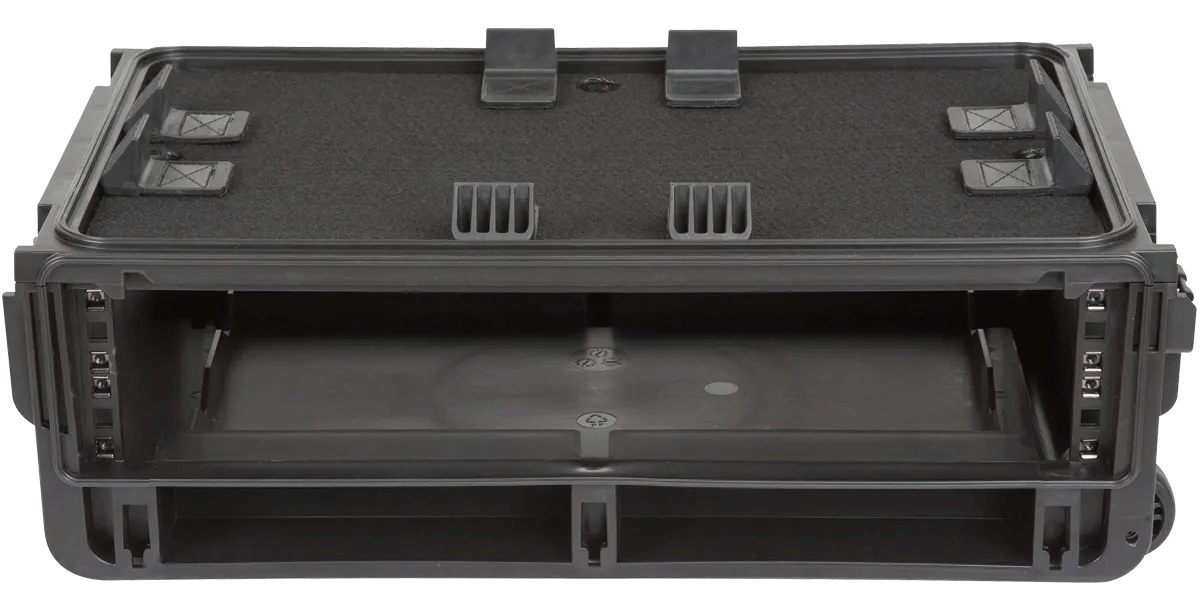 The 1SKB-iSF2U Studio Flyer is a powerhouse of innovative features packed into a compact, convenient carry-on size. Boasting a virtually indestructible injection molded shell that is both lighter, stronger, and less expensive than the previous 2U Studio Flyer, the 1SKB-iSF2U also features front and rear molded-in square rack rails pre-installed with cage nuts for an extra element of security and durability for sensitive equipment on the go. Improved quiet-glide wheels, an easy-to-operate pull handle, and an unbeatable Lifetime Warranty all help to create the ultimate transport solution for studio gear today.