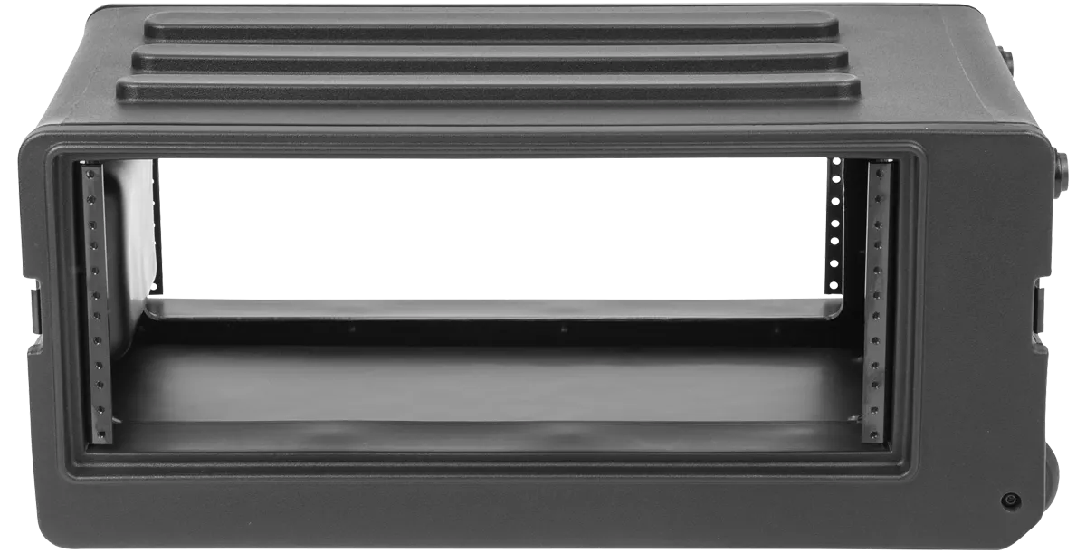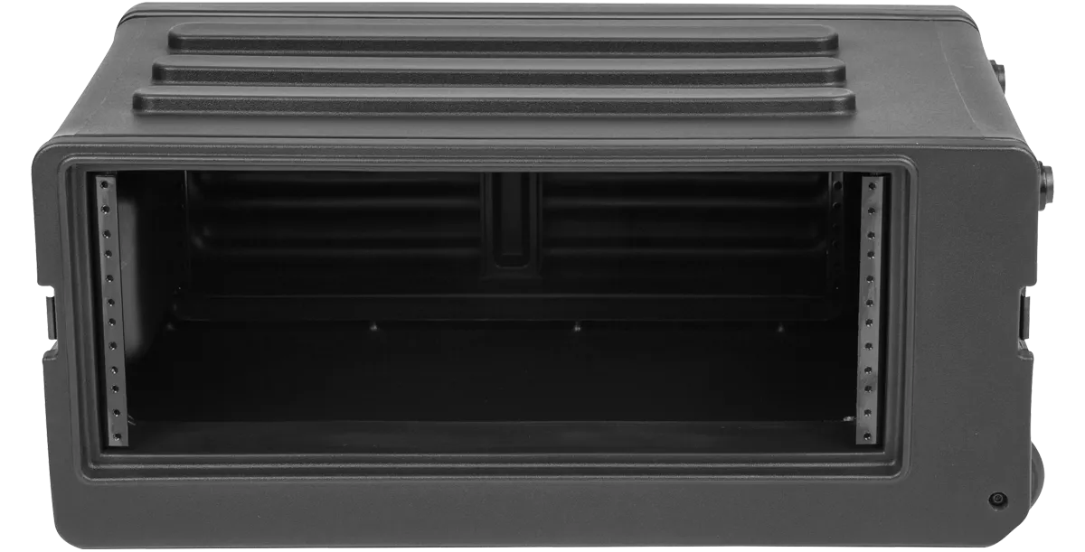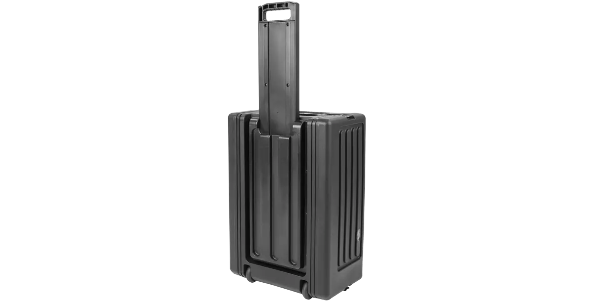 Available in 4U, 6U, and 8U sizes, SKB Shallow Rolling Racks are roto-molded of Polyethylene (LLDPE) for extra strength and durability. These racks incorporate our one-touch pull handle and side mounted wheels to improve ease of transport and help eliminate heavy lifting and carrying.