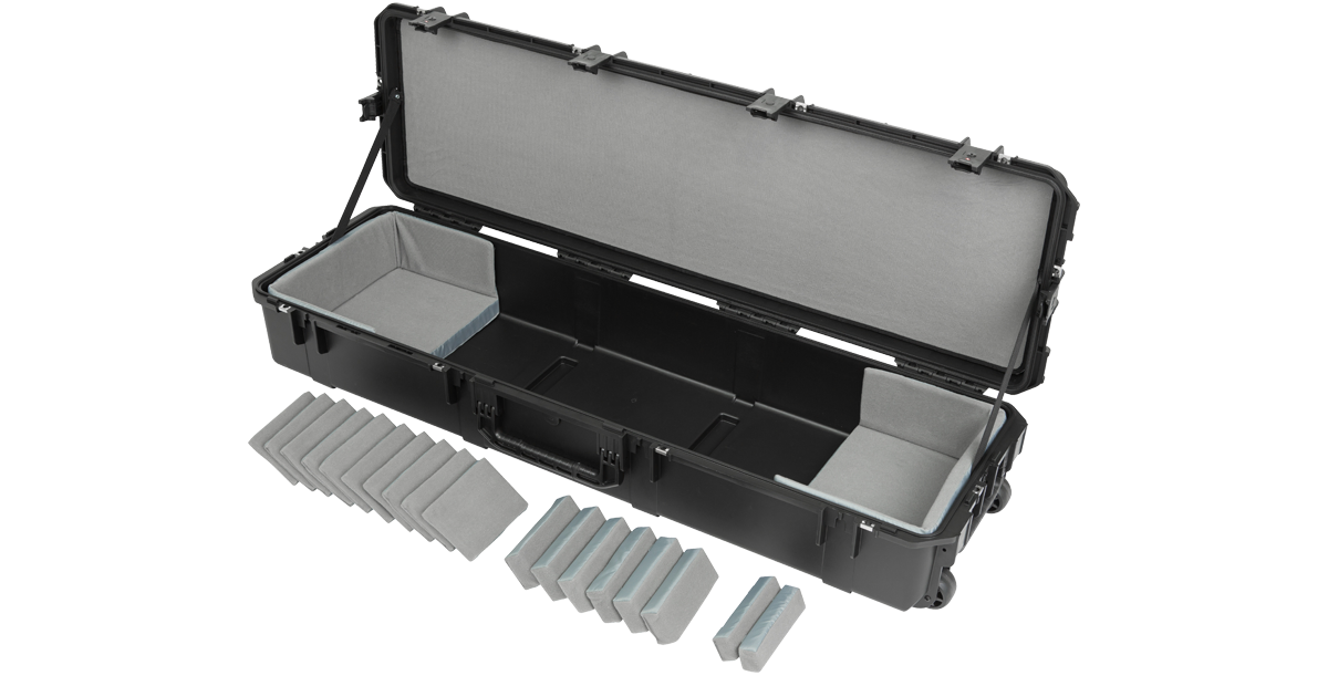 The new 3i-5616-TKBD iSeries 88-note Keyboard Case is waterproof, military grade, and features an all-new Think Tank-designed interior that's fully customizable with repositionable Velex-covered foam pads to ensure a perfect fit, even if your gear changes. The 3i-5616-TKBD can accommodate such models as the Korg Grandstage 88, Nord Piano 3 and Stage 3 88, and Yamaha CP4. Interior dimensions: 52.5" x 15" x 6.25"