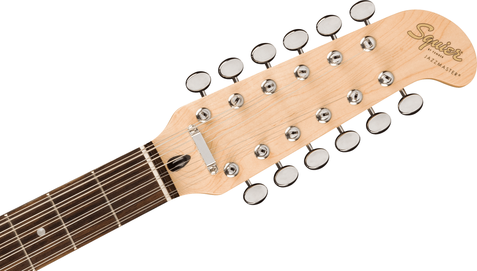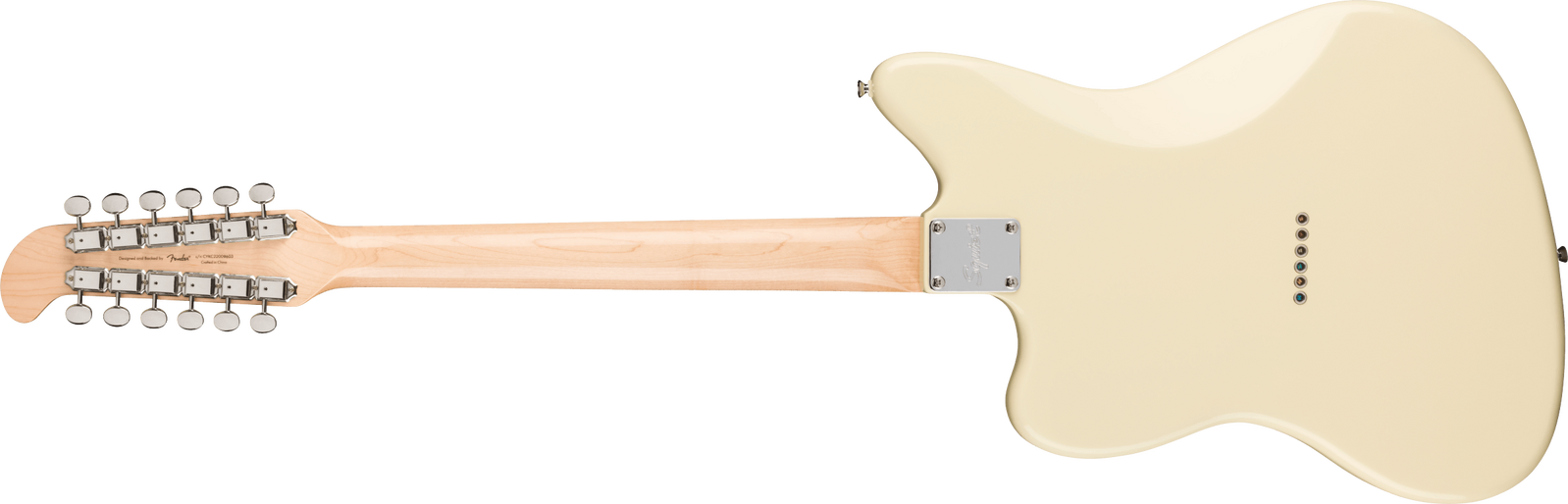 With its iconic offset body shape and rich harmonic character, the Squier® Jazzmaster® XII encourages the most adventurous players to chart a new course of guitar exploration. Featuring dual Fender-Designed alnico single-coil Jazzmaster pickups with 3-way switching and a vintage-inspired "hockey stick" headstock design, this 12-string model doubles down on chime-y tones and timeless style. Other player-friendly details include a graphite-reinforced "C"-shape neck for optimal stability and easy playability, a hybrid string-through-body/top-load bridge for reliable intonation, vintage-style tuning machines for smooth tuning action, and a gloss neck finish for a slick yet confident feel.