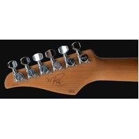 The Mateus Asato Signature Series is available in two finishes: Gloss Black and Antiqued Shell Pink. Both models feature our Even C Medium neck profile, which is carved from silky-smooth satin finished Roasted Maple. The Indian Rosewood fingerboard features our 9″-12″ compound radius and is appointed with 22 stainless steel heavy frets. A Gotoh 510 tremolo, V63+ single-coils, and Custom Alnico humbucker complete the specs. Each guitar comes with a special laser-engraved neck plate, Mateus’ signature on the back of the headstock, and is delivered in a classy black tolex hardshell case.
