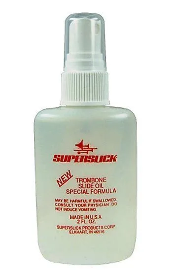 Our special formula oil for trombone slides applies easily with the fine mist spray cap. Gives long lasting and silent slide performance. All Superslick products are player tested and educator approved and are made from non-hazardous components. 2 oz. bottle.