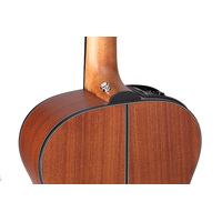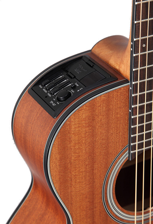 This all mahogany, non cutaway 3/4 size Takamini may be the best excuse ever to own a smaller scale guitar. Tuned standard, alternate or high strung to heaven, the TGX11MENS is a very unique and versatile instrument all unto itself. The rosewood 21 fret fingerboard and friendly 42mm nut width have the feel of an old friend.
