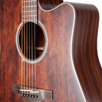 Its solid spruce top is mated with a mahogany back and sides for solid, punchy tone. But its outstanding visual appeal comes courtesy of Takamine's Satin Molasses color scheme, down to the binding that mimics the molasses color. This guitar looks and sounds like a best friend!