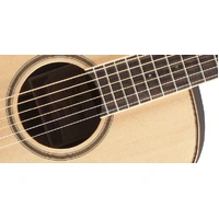 For players seeking the focused, articulate sound that this increasingly popular body style offers, the GY93E features a solid spruce top, black walnut sides and a stunning three piece black walnut & maple back. The slim mahogany neck and 12" radius bound laurel fingerboard provide great feel and playability, while the onboard Takamine TK-40D preamp system gives you a built in tuner, three band EQ and gain controls, mid contour switch, notch filter and EQ bypass switch for the ultimate in versatility and sound quality.