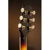 Premium design appointments include an ebony fingerboard with ivory binding and mother-of-pearl "snowflake" inlays, a black headcap, gold tuners with pearl buttons, a natural bone nut and gloss brown sunburst finish.