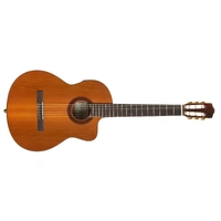 An excellent choice for any player seeking an affordable acoustic/electric classical guitar that performs well above its price tag, the TGC1CE features a fan braced select spruce top and mahogany back and sides for a full and balanced sound. The comfortable mahogany neck rosewood fingerboard provide great feel and playability, while the onboard Takamine TPE preamp system gives you a built-in tuner with volume and tone controls and a mid cut switch for excellent amplified performance.