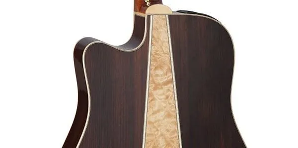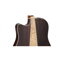 For players seeking stage worthy features and an uncommon look, the GD93CE features a solid spruce top, rosewood sides and a beautiful three piece rosewood & quilted maple back. The slim mahogany neck and 12" radius bound rosewood fingerboard provide great feel and playability, while the onboard Takamine TK40D preamp system gives you a built in tuner, three band EQ and gain controls, mid contour switch, notch filter and EQ bypass switch for the ultimate in versatility and sound quality.
