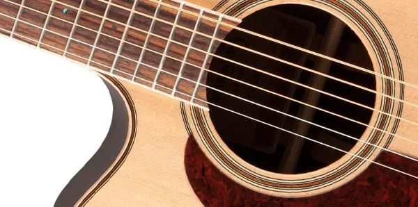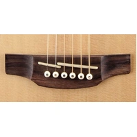 Other premium features include maple body, neck and headstock binding, dark wood rosette and body purfling, synthetic bone nut and split bridge saddle, rosewood headcap, abalone dot inlays, gold die cast tuners with black buttons and a beautiful gloss finish.