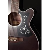 The Maple neck is capped with a rosewood fingerboard with striking oval pearloid inlay patterns. The pickguard features a "Grass Flower" pattern over a black background.