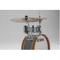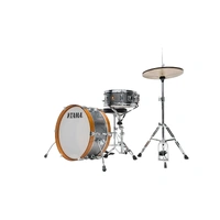 The Tama Club-Jam Mini 2-piece complete kit with 18" Bass Drum in Galaxy Silver is part of the 2019 DRUM KITS release in the Club-Jam Series. We are proud to offer a new compact kit – the "Club-Jam" Kit. This kit adopts some ideas from vintage kits, such as a cymbal holder mounted directly on the bass drum shell and curved bass drum spurs, further setting it apart from the typical compact kit. Focused yet deep sound from Mersawa/ Poplar hybrid shell is just right for small and intimate gigs. Its compact size and configuration make it ideal for working drummers, and it fits comfortably on just about any stage. This product comes in a 2 piece shell kit in a 7"x18"Bass Drum & 5"x12"SD, Hi-Hat Stand, Drum Pedal, Snare Stand & Drum Throne configuration. Designed with 7mm, 8ply Mersawa / Poplar hybrid shell with a Bass Drum Wood Hoop, all in a Compact sizes for easy transport, and a CACLJ Bass Drum Mounted Cymbal Holder Sold Separately , Available for transportation is the DSS28LJ Bag Set Sold Separately.