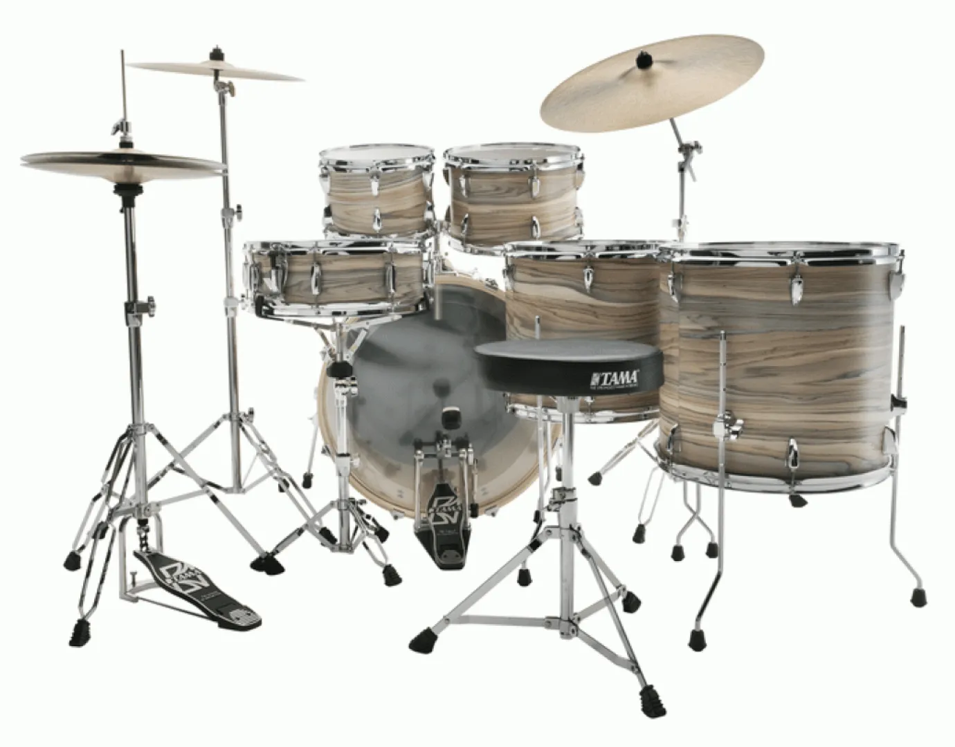 Hardware: MTH50 double tom holder, hi-hat stand, single drum pedal, snare stand, boom cymbal stand, straight cymbal stand, drum throne.