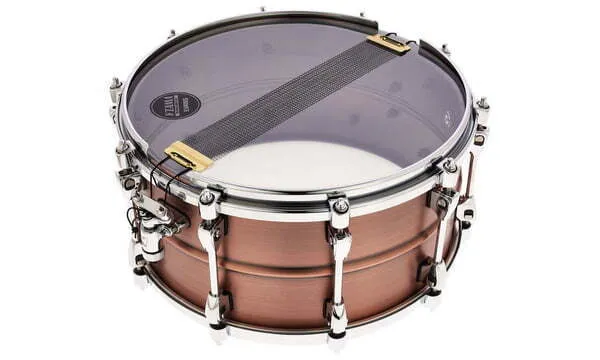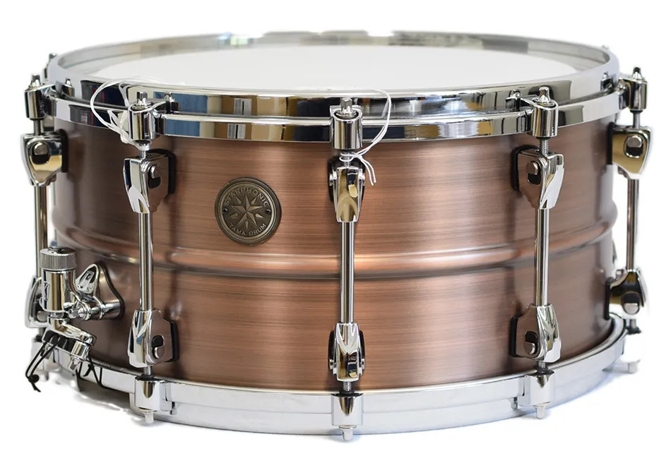 The Tama Starphonic 7x14 snare drum 1.2mm Copper shell in is part of the 2019 Snares release in the Starphonic Series. For the first time in the history of the StarPHONIC series, the PCP147 snare drum features a 1.2 mm copper shell with a 7 depth, creating an extraordinary raw, dark tone with rich low frequencies in its overtone. Combining outstanding StarPHONIC features such as a Grooved Hoop and a Super Sensitive Hi-Carbon snare wire, the PCP147 provides improved sensitivity and controlled sound.This Snare is an 1.2mm Copper shells with Satin Hairline Finish with a Grooved Hoop, and Linear-Drive Strainer & Butt with Freedom Lug & Claw Hook.