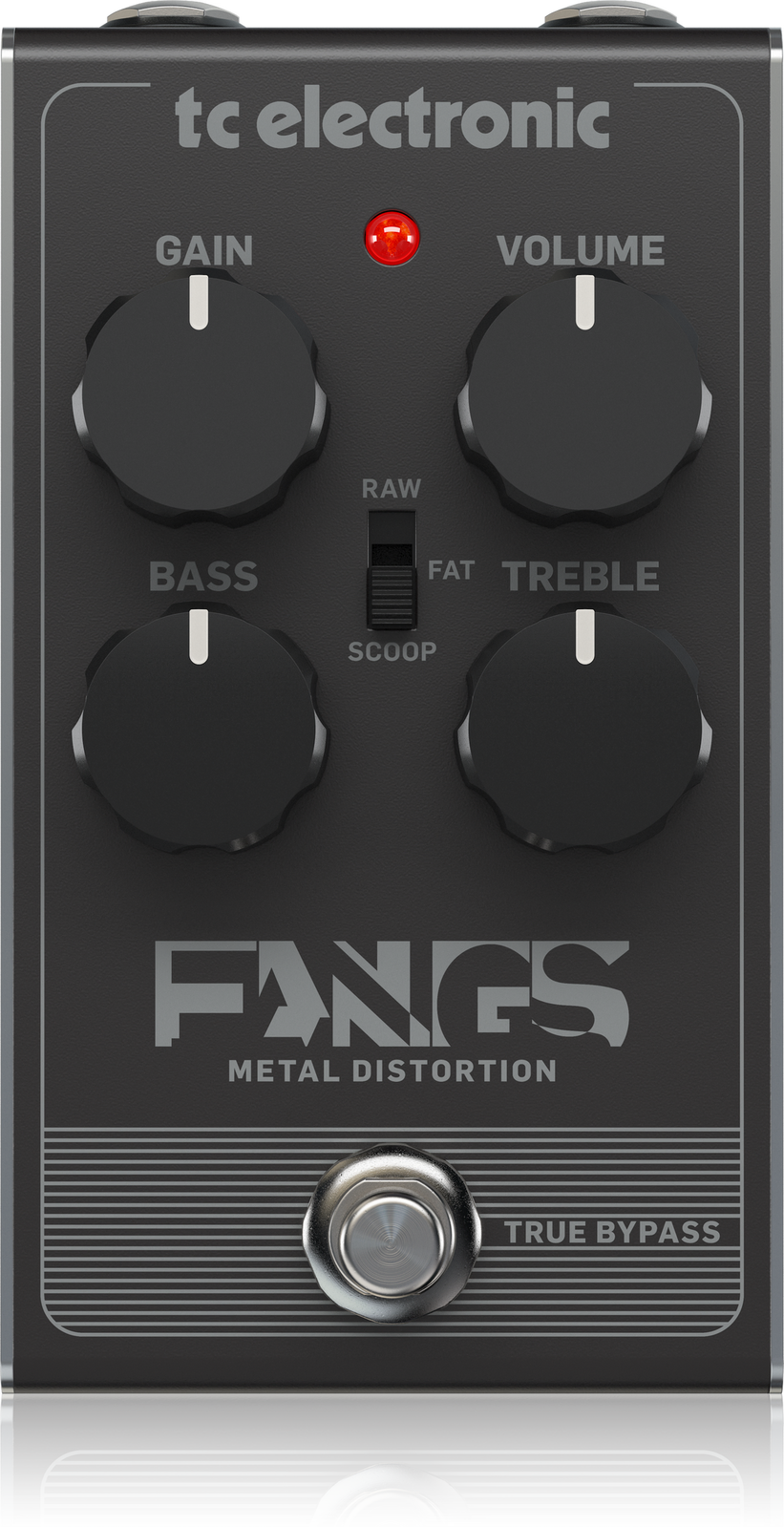 When it comes to mastering metal guitar tones, the mid frequencies are where it all happens. That’s why FANGS METAL DISTORTION features a versatile mid-frequency selector switch in addition to the typical Bass and Treble controls. This handy little control lets you go from raw classic metal tones to scooped nu-metal – and all the way to super-beefy sludge metal tones, with just the flick of a switch.