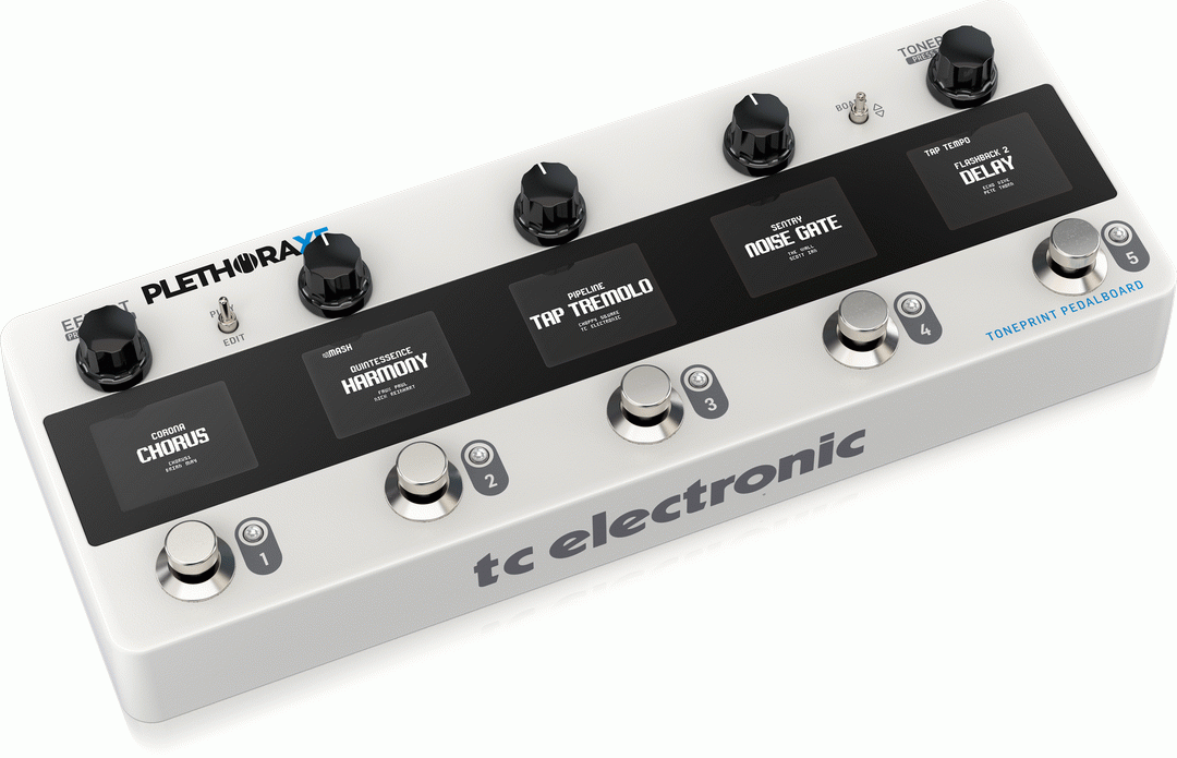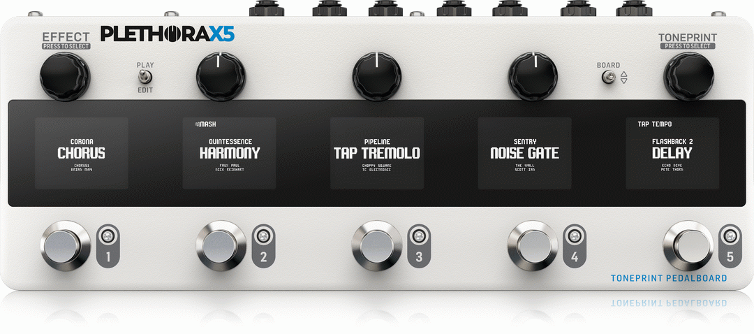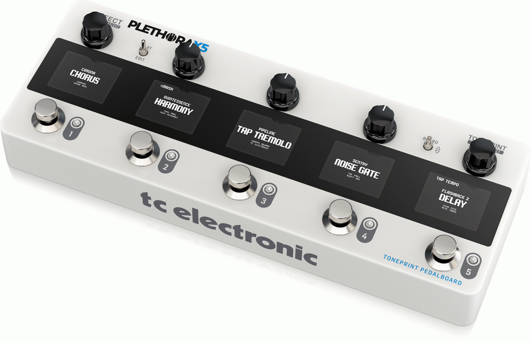 PLETHORA X5 - TonePrint Pedal Board with up to 127 Boards, 5 Pedal Slots, all Your Favorite TC FX, 75 TonePrint Slots Per Effect, 5 MASH Footswitches and Integrated FX Loop Insert