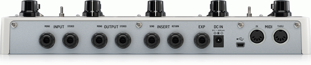 • EXP input – assign an external expression pedal to control FX parameters or use as a volume pedal anywhere in the signal chain