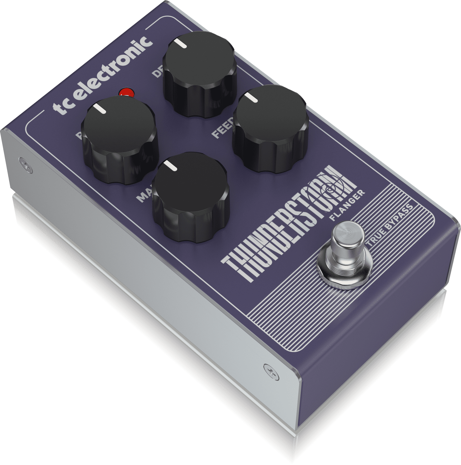 Turning on THUNDERSTORM FLANGER is like driving a pink Cadillac down Rock ‘n’ Roll Boulevard – fueled by a bolt of lightning! Want luscious faux-chorus tones? You got it! How about some classic ‘60s psychedelic riffs? You got it! How about the guitar sound that made ‘80s rock history? You got that, too! No matter what you’re looking for: a slight warble; a squadron of F16s with their afterburners kicked on; or anything in-between, with this little beauty you’ll be burning down the house in no time. So if old-school flanger tones make your heart race – then THUNDERSTORM FLANGER is your neo-vintage rocket-sled.