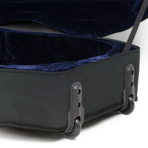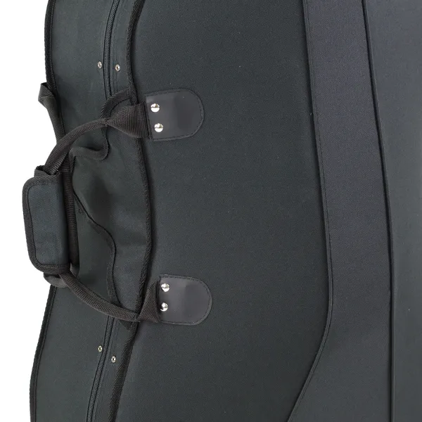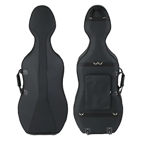 Lightweight Cello case with YKK zips in black featuring a soft interior and wheels for easy travel.
