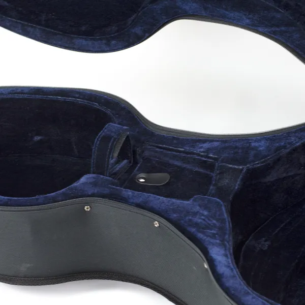 1/4 Lightweight Cello case with YKK zips in black featuring a soft interior and wheels for easy travel.