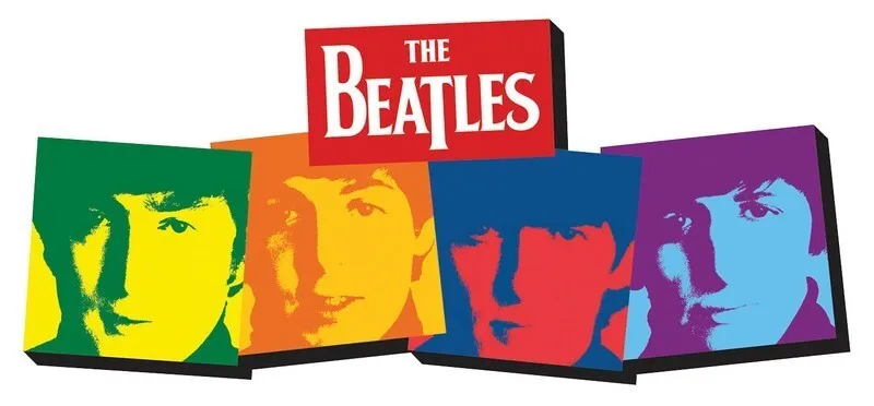 The Beatles in four color-blocked headshots