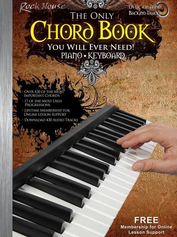 Learn the building blocks to play songs and create your own music! This unique chord learning system designed by John McCarthy guides you through 500 of the most important chords used in all genres of music. Each chord is shown with player's perspective view, keyboard diagram and in music notation. Use the downloadable audio demonstrations to hear and play each chord quickly and easily. Learn the chord formulas used to constructeach chord so you can create your own inversions and chord scale formul as to put chords together and write your own songs. Over 500 professional backing tracks and playing examples! Download the audio demonstrationsand hear every note of each chord played slowly and clearly. Listen to them on your computer, portable device or burn them to a CD. As a bonus,you will gain access to the music and backing tracks for 17 of the most common progressions of all time. Use these full band backing tracks to play many of the chords from this book and learn how to apply them to create songs and progressions. In addition, you get FREE lifetime membership to The Rock House Method® lesson support system on the web. Use the number found inside this book to register for support at www.RockHouseMethod.com. Use this fully interactive lesson support site along with your product to enhance your learning experience, expand your knowledge, link with instructors and connect you to a community of people around the world who are learning to play music using The Rock House Method