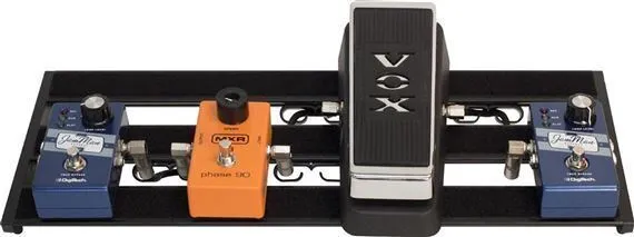 The raised rear provides a more natural angle of access to the buttons and knobs on your stompboxes. Integrated cord clips offer simple management of cables to keep appearances tidy. The pedalboard remains firmly planted in place thanks to rubber feet. The GSP-300-BK ships with a soft case for handy transport.