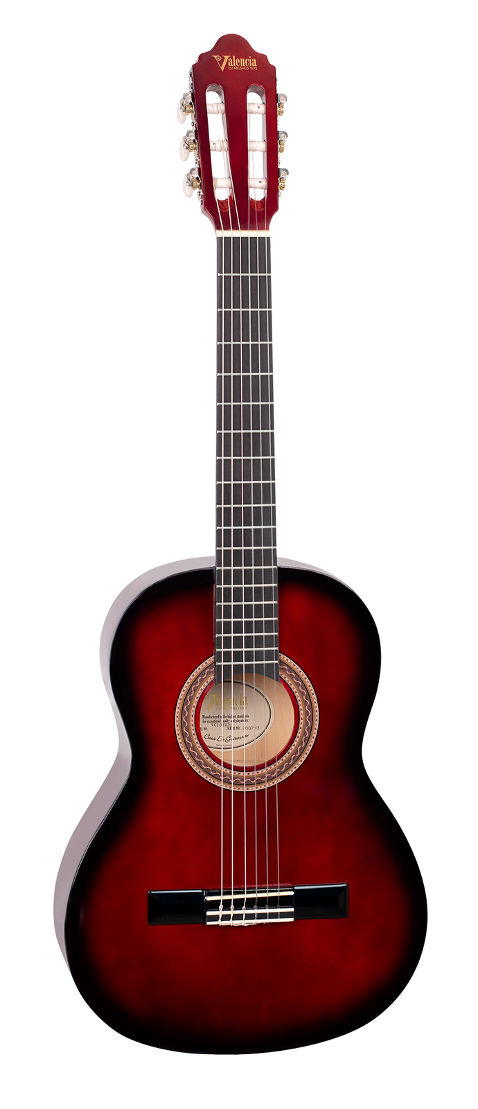 Valencia VC103RDS 3/4 Size Nylon Classical Guitar Red Sunburst