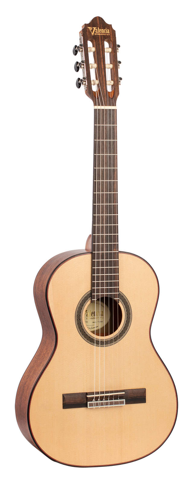 Valencia VC703 3/4 Size Solid Top Classical Guitar in Natural Satin
