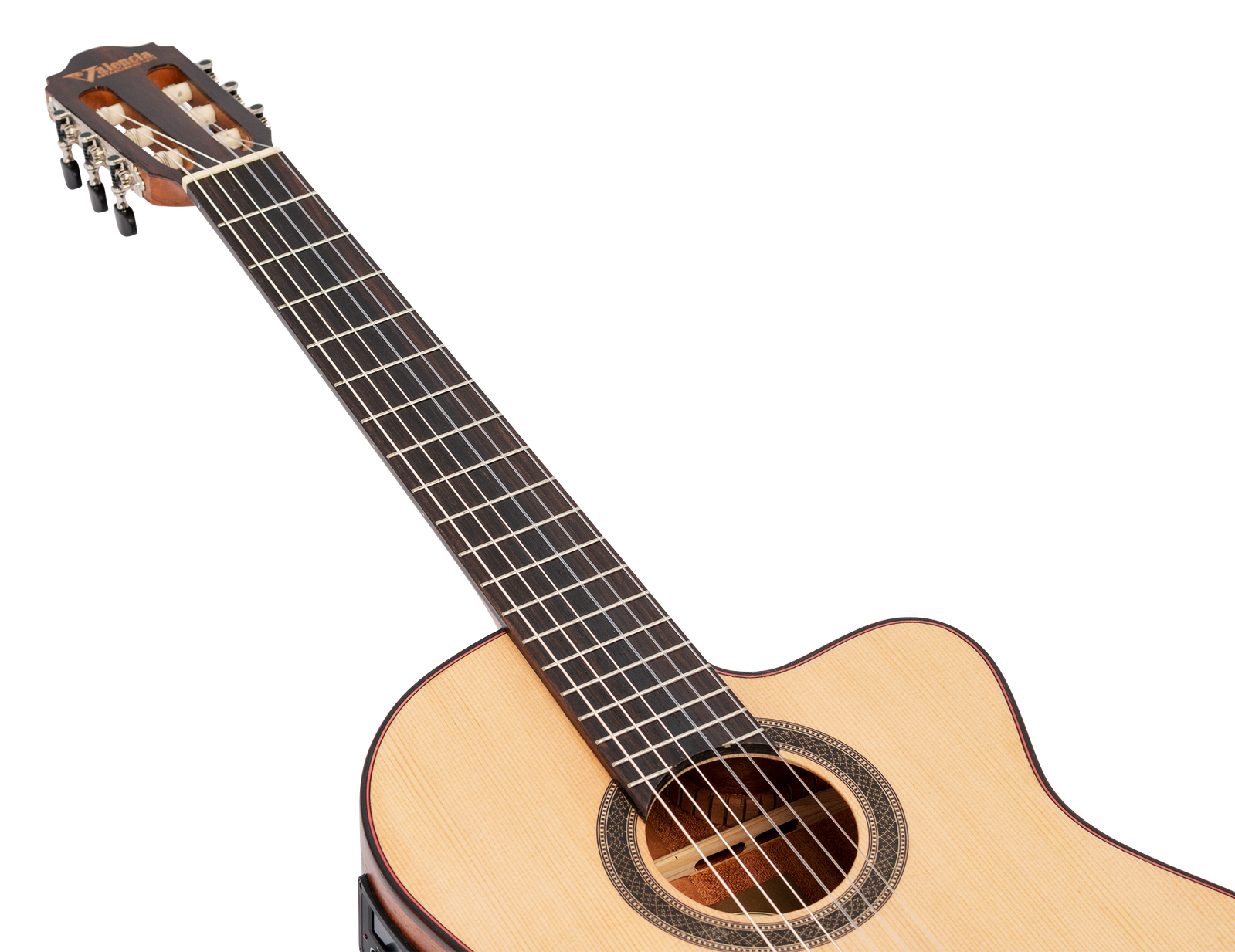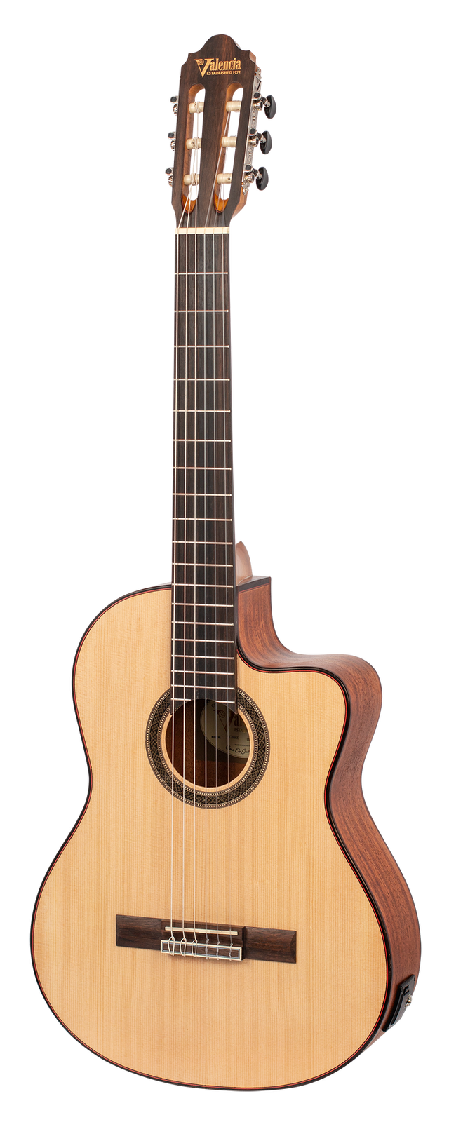 The VC704CE cutaway electric acoustic model comes with a built-in Valencia 3-Band EQ preamp system for great plugged-in tone that picks up every nuance of your performance. It even features a built-in tuner so you’ll always sound your best.