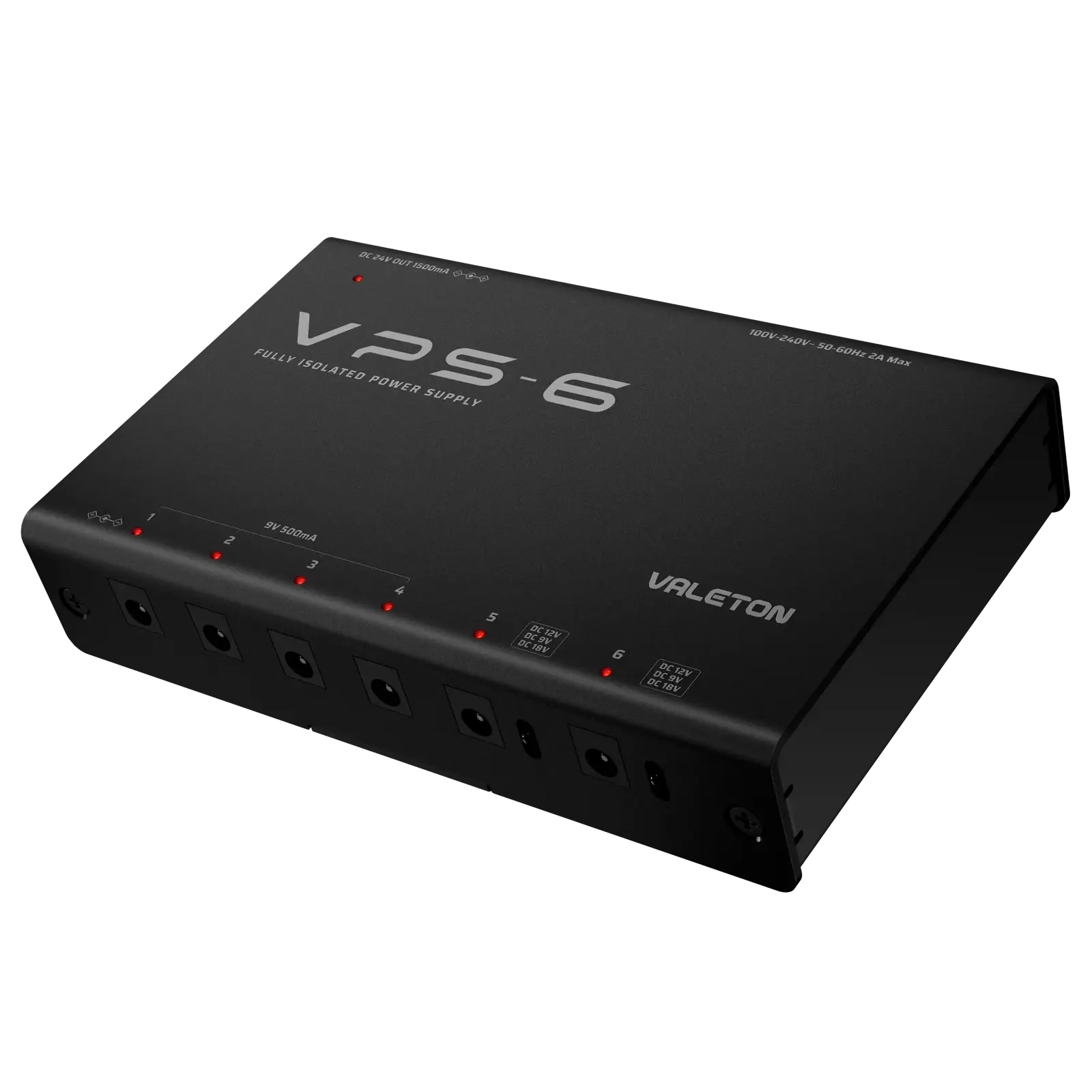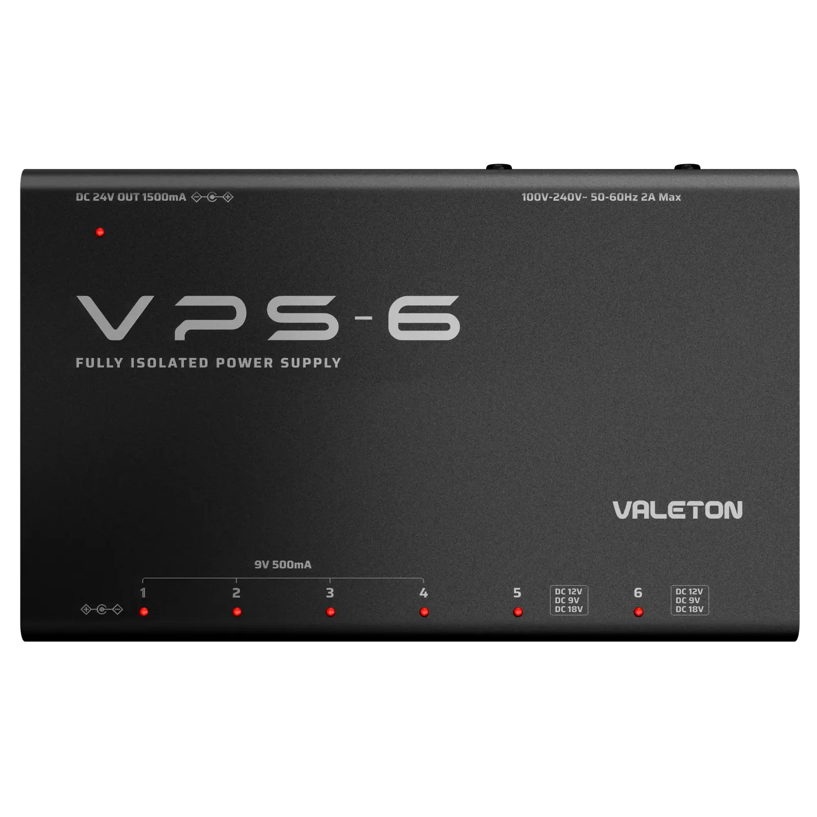 The Valeton VPS-6 is a high-performance isolated power supply built to provide pristine, noise-free power to multiple effects pedals. With dual isolation, it features six independent outputs, each tailored to meet the varying power needs of modern gear. This includes four dedicated 9V/500mA outputs and two adjustable outputs (9V/500mA, 12V/375mA, 18V/250mA), plus a powerful 24V output for expandable setups. Designed with advanced noise reduction and overload protection, the VPS-6 ensures your pedalboard’s performance remains clean and clear, with LED indicators for each output to safeguard against short circuits and power issues. Its compact, rugged aluminium casing and wide 100-240V AC input range make it adaptable to any environment, at home or on tour.