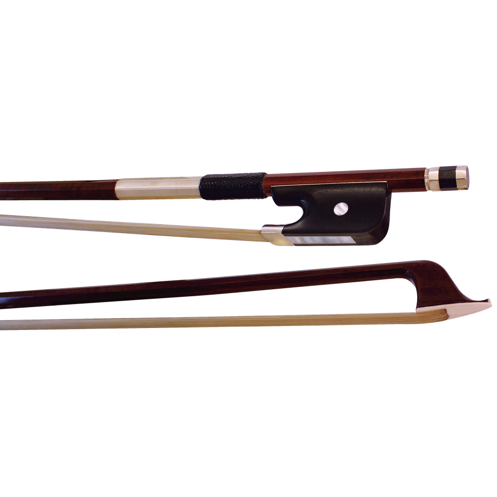 The Student's Choice. A Superb beginners bow. Fine Brazilwood octagonal stick With Silverplated copper wire grip and a Nickel mounted Ebony frog. 1/4 size cello bow.