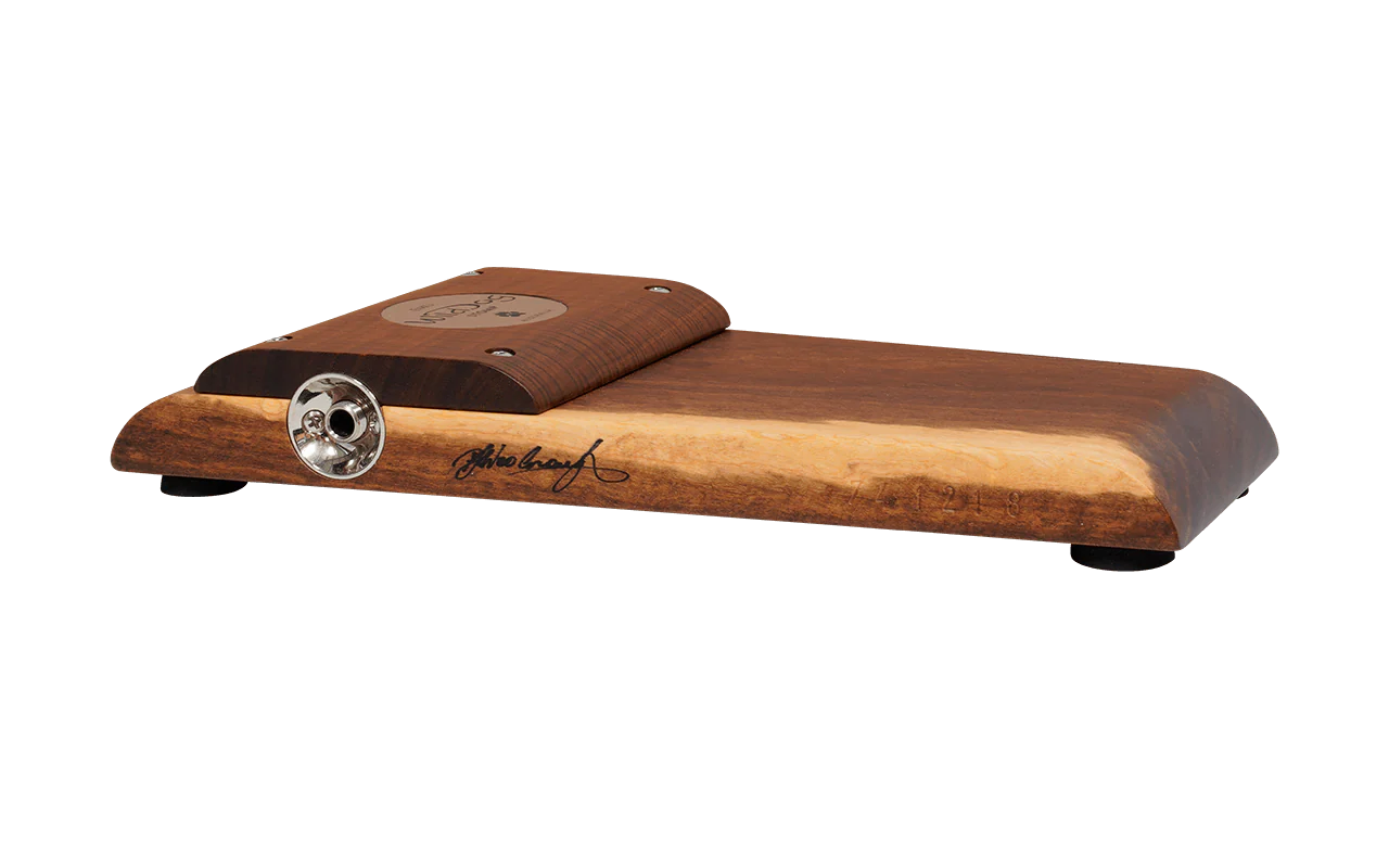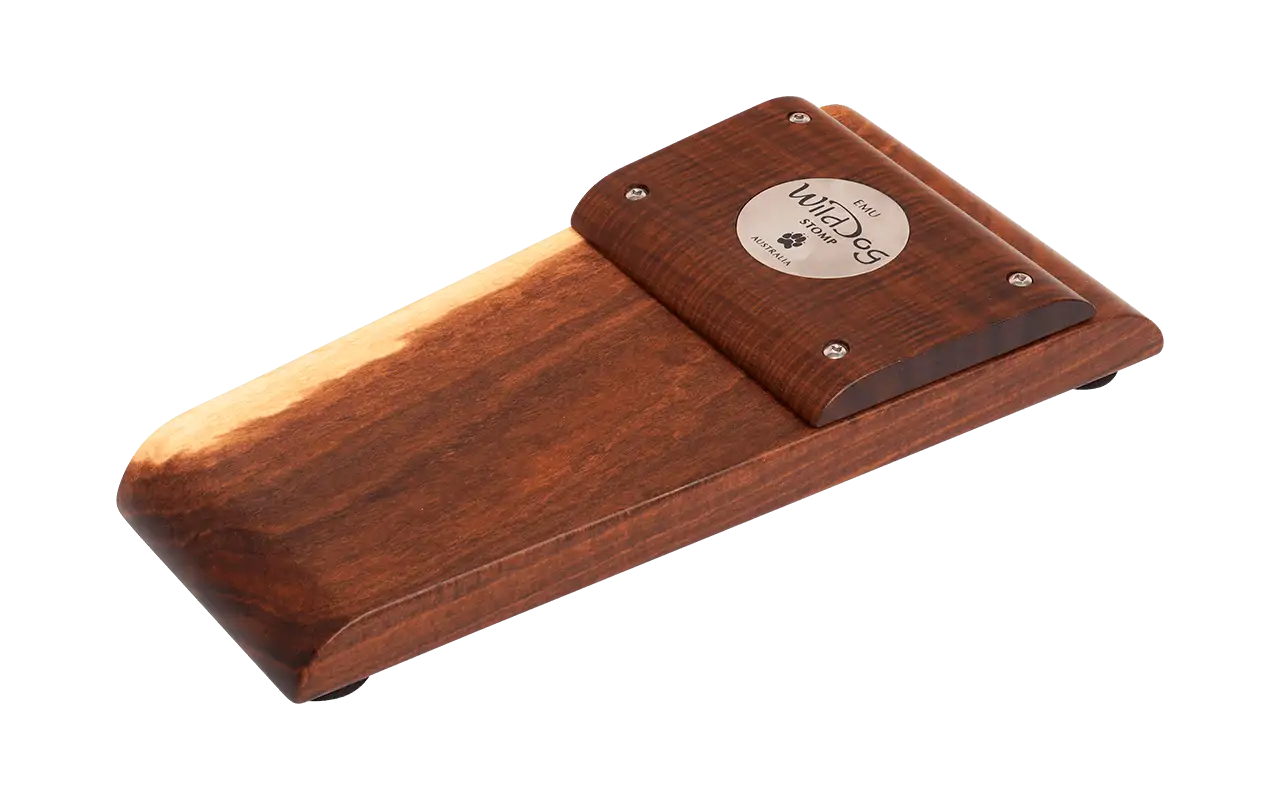 The Emu has been designed with the smaller footed person in mind, much like the Yowie only smaller, however this does not mean it lacks any of it’s bigger brothers fat tone. All solid timbers give this stomp box a distinctive look and serious bottom end thump. It also features a fatigue reducing rolled heel which allows the foot to pivot rather than lift, thus significantly reducing the tapping effort. The raised tone bar provides an instant sweet spot for a deep warm tone.