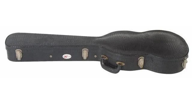 SG shaped, heavy duty 5 ply crossgrain plywood hard case. Arched top with thick foam interior padding. Covered accessory compartment with deluxe stitched handle.