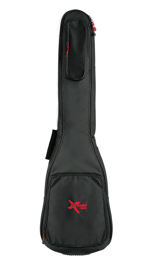 Black heavy duty nylon waterproof yarn. 10mm sponge padded and lined. Reinforced at headstock and bridge. Heavy duty full length zip. 2 accessory/music pockets. Cross stitched, cushioned carry handle. 2 adjustable shoulder straps with comfort pads. Moisture resistant bottom with rubber tread. Toggles to all zips. Embroidered Xtreme logo.