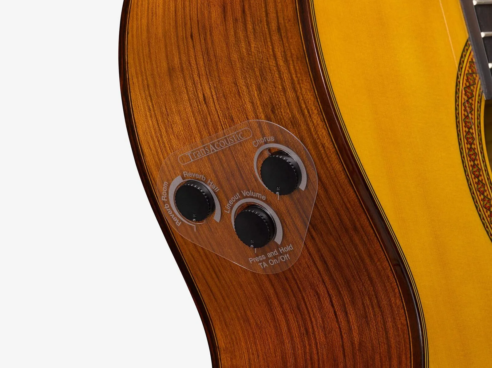 Yamaha CG-TA TransAcoustic classical nylon-string guitars transport you to new creative spaces with immersive reverb and lush chorus effects, without needing an amp or other external gear. The only nylon-string TransAcoustic model, the CG-TA has ovangkol back and sides, yielding rich, focused tone and traditional elegance. Comfortable string height and neck design offer superior playability.