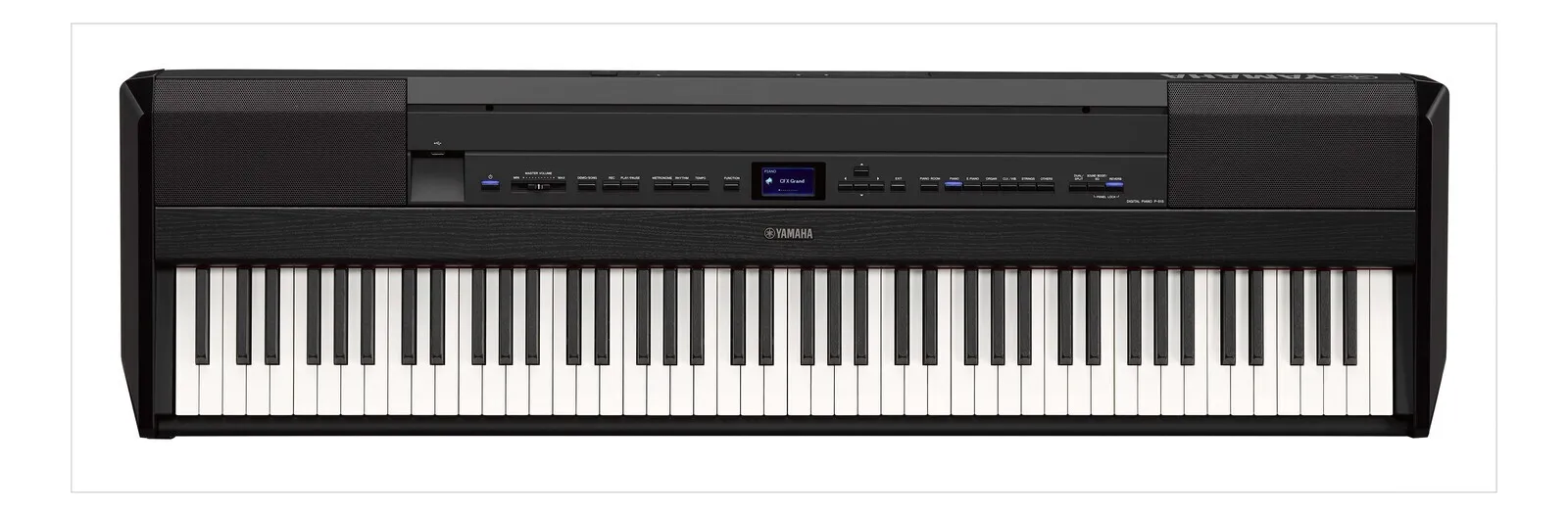 The P515 features an 88-key NWX (Natural Wood X) keyboard with synthetic ebony and ivory keytops with escapement, Yamaha CFX & Bosendorfer Imperial concert grand piano samples, 256 note polyphony, 40 Voices + 18 Drums/SFX Kits + 480 XG Voices, 40 Rhythms, intuitive control via Smart Pianist app, Audio recording WAV 44.1Khz, 250 song recording, Aux L+R outputs for connection PA, MIDI In/Out, USB To Device/Host, (15W + 5W) x 2 speaker amplifier system.