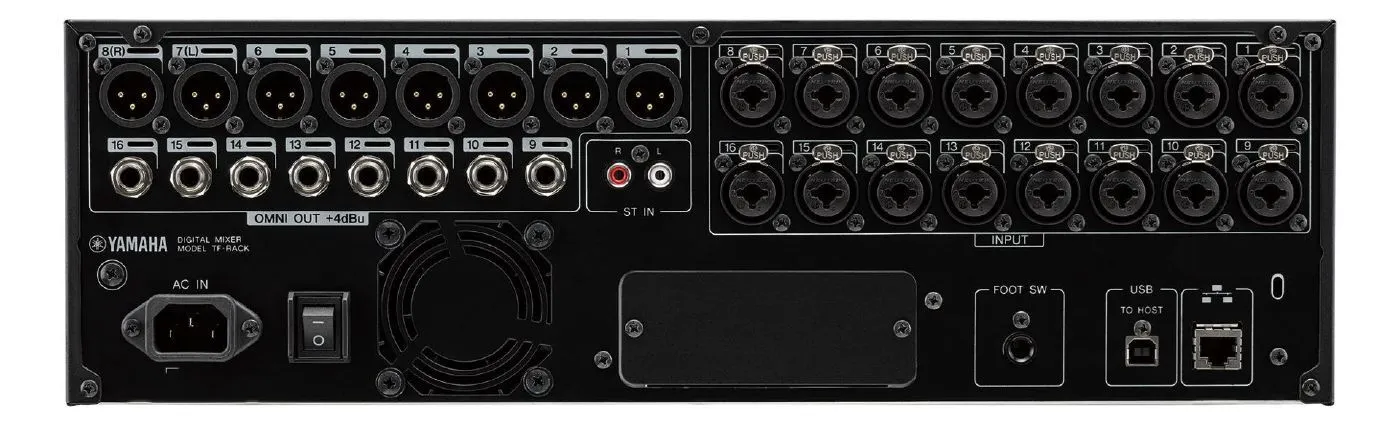 TF-RACK is equipped with 16 mic/line + 1 stereo line inputs and 16 ouputs on its compact body and also has a slot to mount optional expansion card NY64-D. Like other TF series, TF-RACK can easily add up to three Tio1608-D I/O racks with NY64-D card using the console's QUICK CONFIG mode.