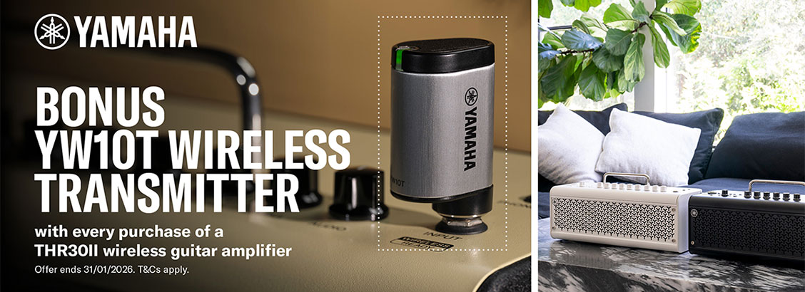 Buy a Yamaha THR30II series wireless guitar amplifier and receive a bonus YW10T wireless transmitter, via redemption!